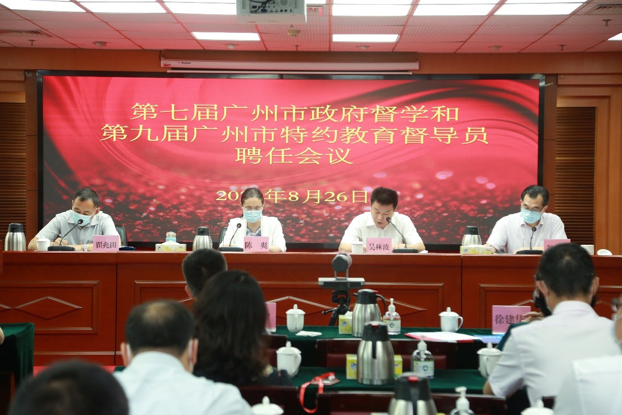 (党委统战部供稿)8月26日上午,广州市在市教育局召开了第七届市政府督学和第九届特约教育督导员聘任会议,广州市政府副秘书长吴林波代表市政府出席了聘任大会并作讲话,市教育局党组书记、局长、一级巡视员陈爽宣读了关于聘任第七届市政府督学和第九届特约教育督导员的决定。