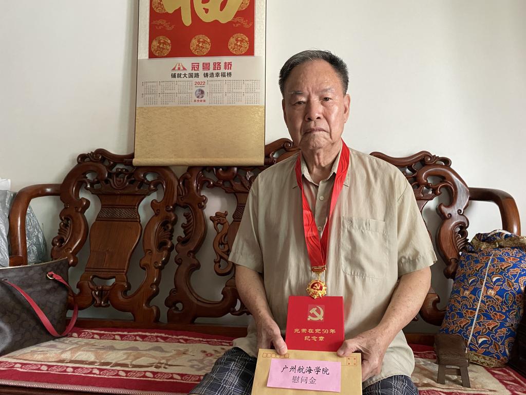 6月20日下午,党委组织部、离退休办公室负责同志代表学校党委到老党员董聚声家中慰问并为其颁发“光荣在党50年”纪念章。