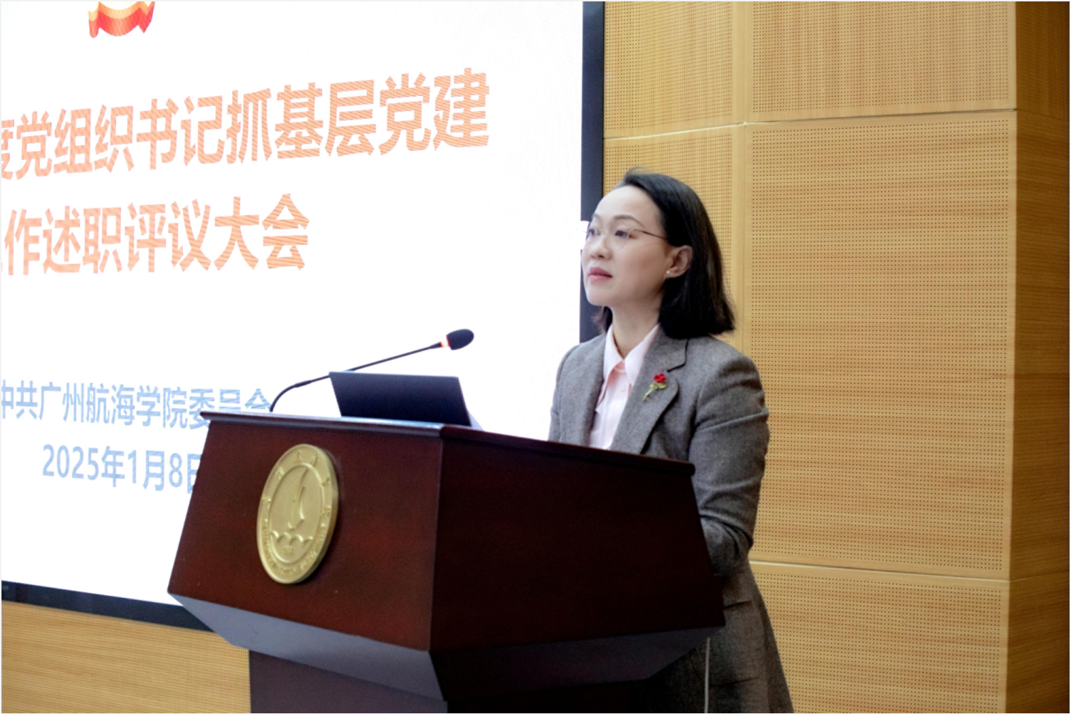 2025年1月8日上午,学校2024年度基层党委(党总支)书记抓基层党建工作述职考核评议大会在胜海厅举行。校党委书记陶韶菁主持并作点评讲话。