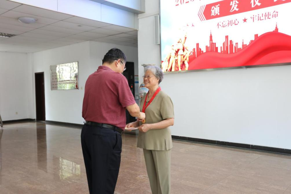 学校党委组织部部长陈雪芳、离退休办主任卢良彦,以及党委组织部相关同志等参加了颁发仪式。