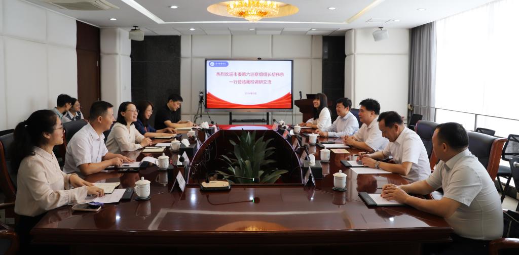 9月25日上午,市委第六巡察组胡伟京组长一行5人莅临我校调研交流,学校党委书记陶韶菁与调研小组会见。